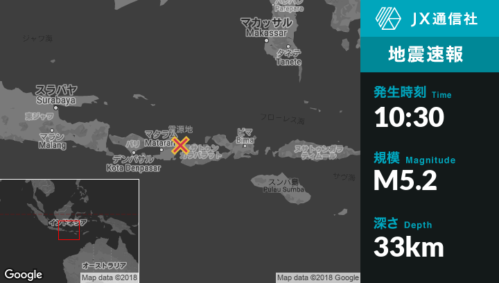 8月20日 10:30頃、インドネシアのSambeliaから北北東6kmの地点でM5.2の地震がありました。
