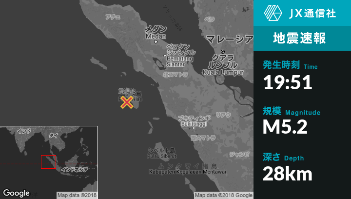 | 震源地 | インドネシアのSibolgaから西南西178kmの地点 |