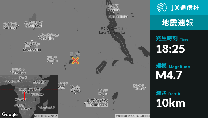 | 震源地 | コンゴ民主共和国のBukamaから北東131kmの地点 |