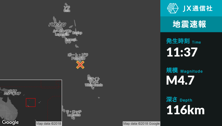 | 震源地 | バヌアツのPort-Vilaから南東21kmの地点 |