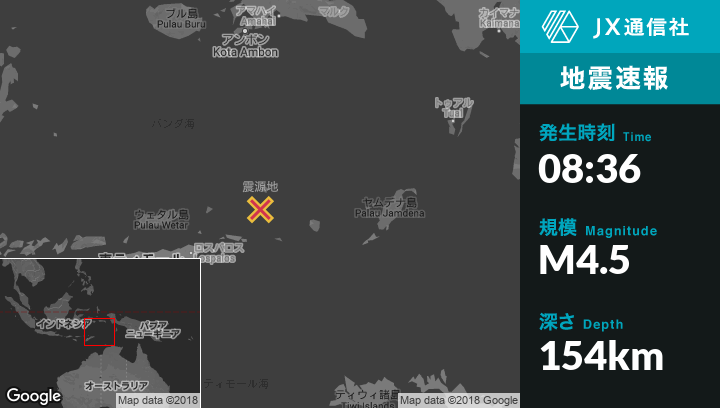 | 震源地 | インドネシアのSaumlakiから西314kmの地点 |