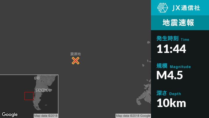 9月28日 11:44頃、チリのPuerto Quellonから西南西554kmの地点でM4.5の地震がありました。
