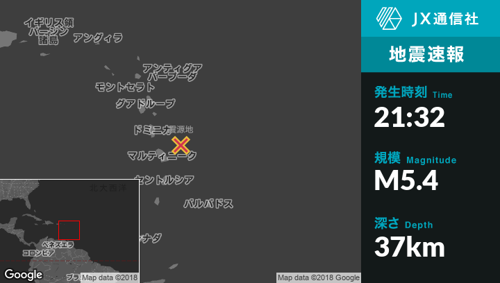 | 震源地 | マルティニーク島のSainte-Marieから東北東67kmの地点 |