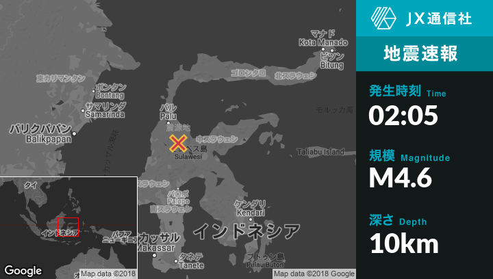 9月29日 02:05頃、インドネシアのKasiguncuから西51kmの地点でM4.6の地震がありました。