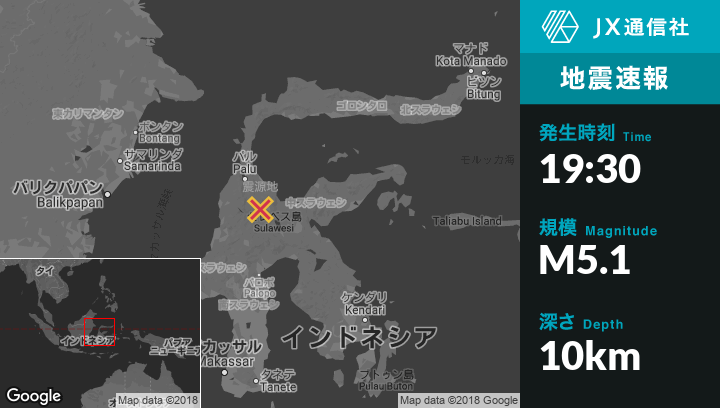 | 震源地 | インドネシアのKasiguncuから西49kmの地点 |