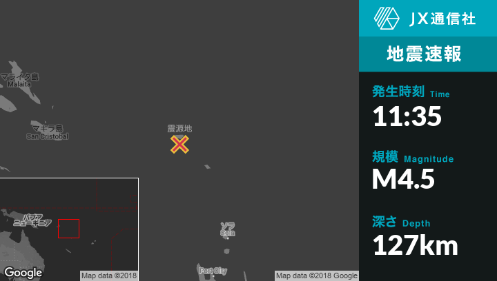 9月30日 11:35頃、ソロモン諸島のLataから東南東22kmの地点でM4.5の地震がありました。