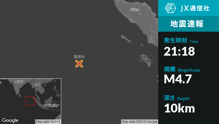 | 震源地 | インドネシアのSinabangから西南西441kmの地点 |