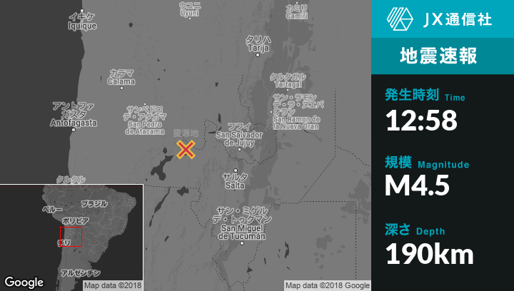 | 震源地 | アルゼンチンのSan Antonio de los Cobresから西北西65kmの地点 |