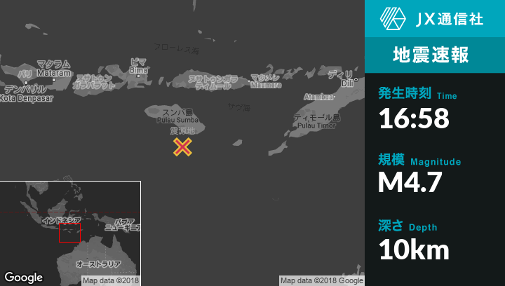 | 震源地 | インドネシアのNggongi Satuから南南西38kmの地点 |