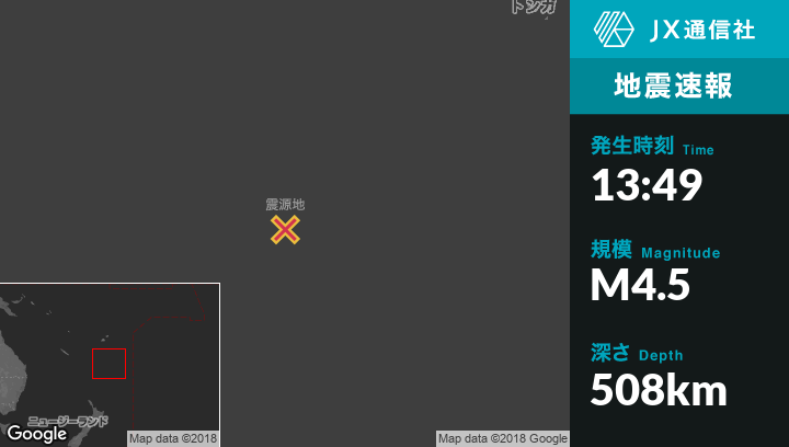 | 震源地 | ニュージーランドのRaoul Islandから北北西507kmの地点 |