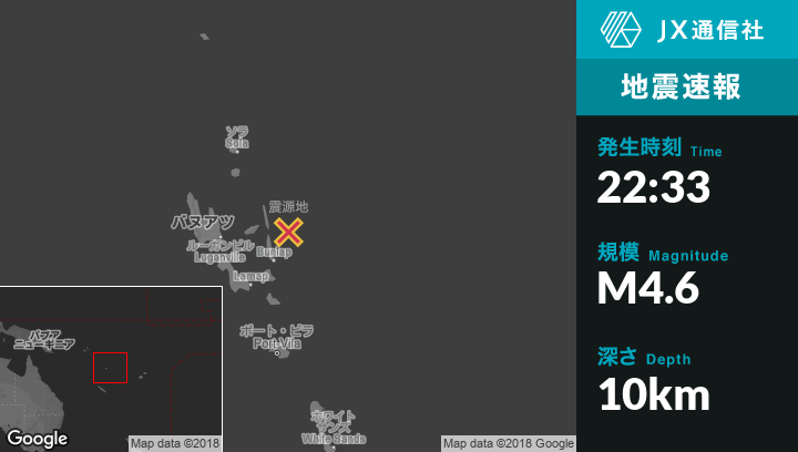 | 震源地 | バヌアツのLuganvilleから東150kmの地点 |