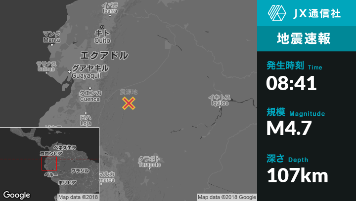 | 震源地 | エクアドルのGualaquizaから東138kmの地点 |