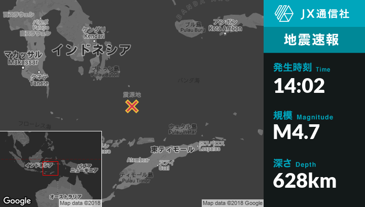 | 震源地 | インドネシアのBaubauから南東217kmの地点 |