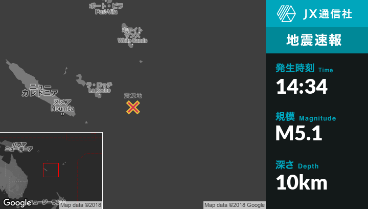| 震源地 | ニューカレドニアのTadineから東南東169kmの地点 |