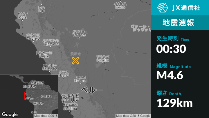 | 震源地 | ペルーのTocache Nuevoから西北西15kmの地点 |