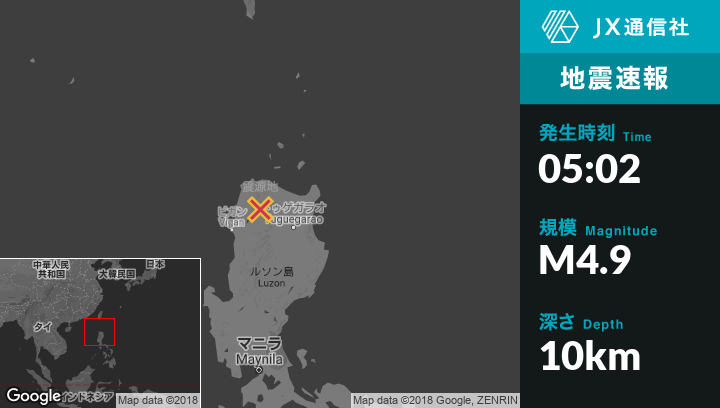 | 震源地 | フィリピンのCalanasanから南17kmの地点 |