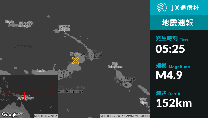 | 震源地 | パプアニューギニアのKokopoから西南西77kmの地点 |