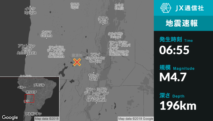 | 震源地 | アルゼンチンのSan Antonio de los Cobresから北西45kmの地点 |
