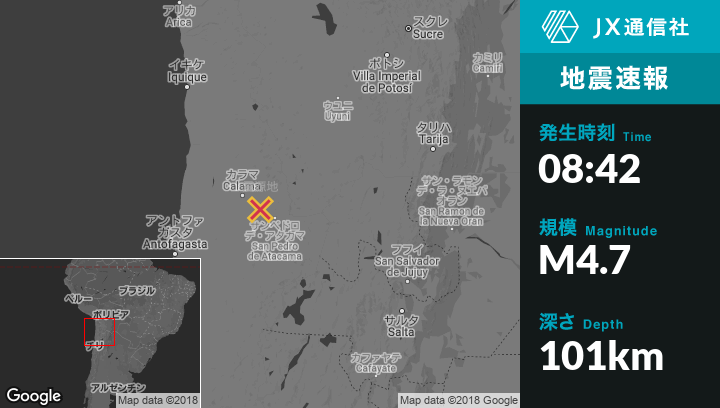| 震源地 | チリのSan Pedro de Atacamaから北西44kmの地点 |