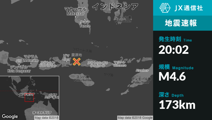 | 震源地 | インドネシアのKomodoから北27kmの地点 |
