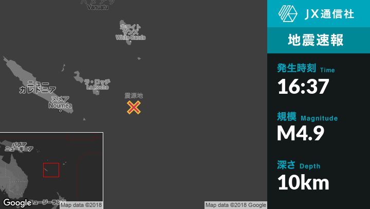 | 震源地 | ニューカレドニアのTadineから東南東184kmの地点 |