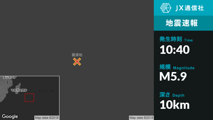 10月21日 10:40頃、レユニオン島のSaint-Philippeから南南東1031kmの地点でM5.9の地震がありました。