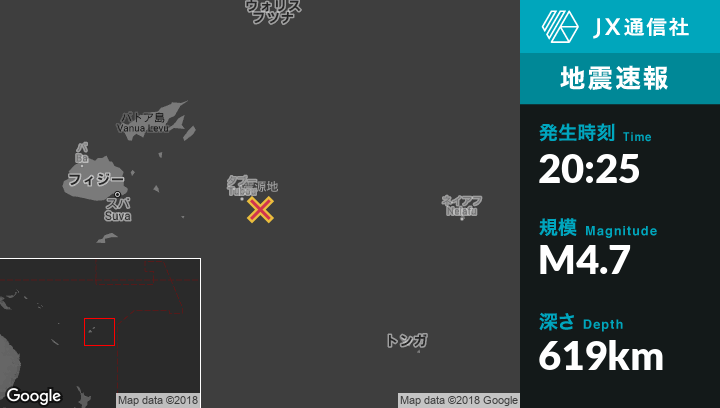 | 震源地 | フィジーのNdoi Islandから北258kmの地点 |