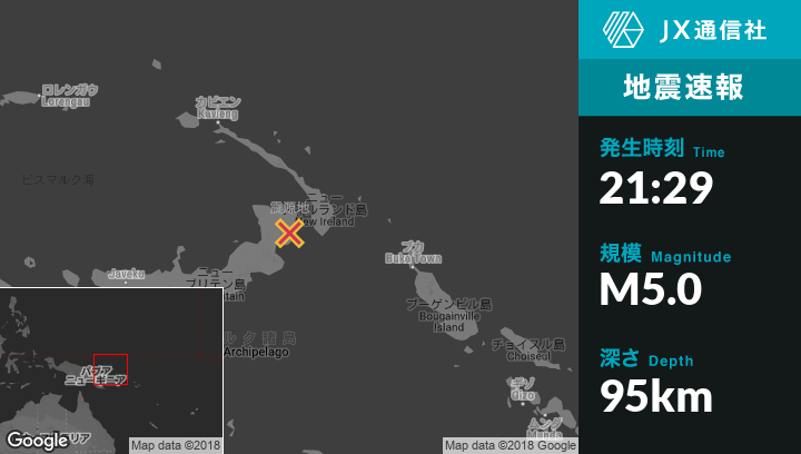 | 震源地 | パプアニューギニアのKokopoから南30kmの地点 |