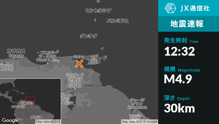 | 震源地 | ベネズエラのGueiriaから南南西34kmの地点 |