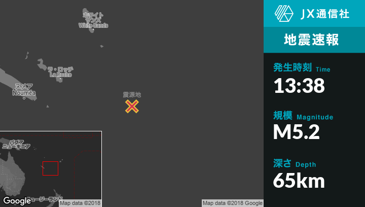 | 震源地 | ニューカレドニアのIle Hunterから西96kmの地点 |