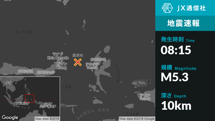 | 震源地 | インドネシアのBitungから東124kmの地点 |