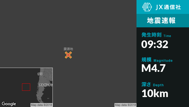 10月26日 09:32頃、チリのChonchiから西1258kmの地点でM4.7の地震がありました。