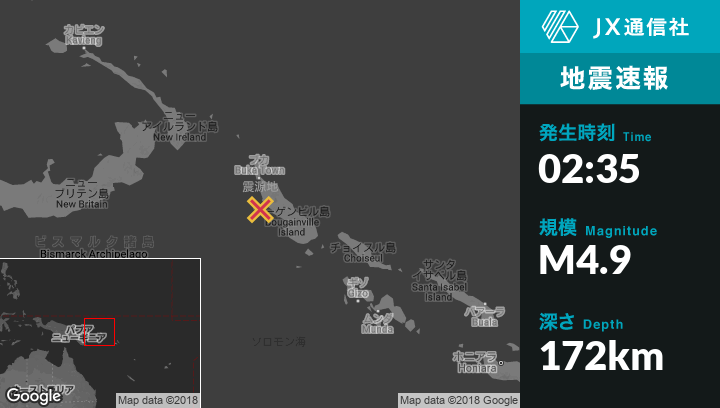 | 震源地 | パプアニューギニアのPangunaから西北西95kmの地点 |