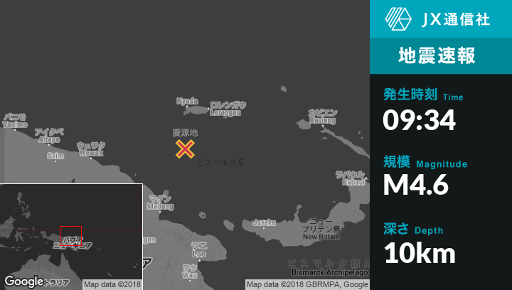 | 震源地 | パプアニューギニアのLorengauから南南西150kmの地点 |