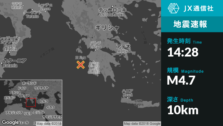 10月27日 14:28頃、ギリシャのLithakiaから南南西26kmの地点でM4.7の地震がありました。