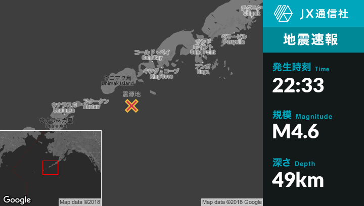 | 震源地 | アラスカのFalse Passから南77kmの地点 |