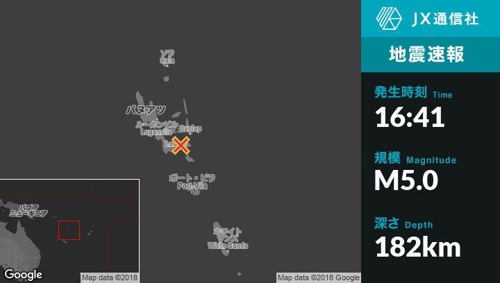 | 震源地 | バヌアツのLakatoroから東57kmの地点 |
