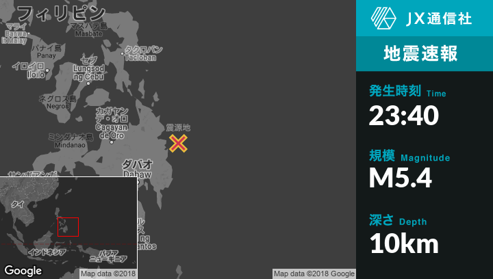 | 震源地 | フィリピンのHinatuanから東北東49kmの地点 |