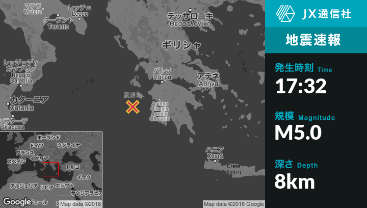 | 震源地 | ギリシャのMouzakiから南西41kmの地点 |
