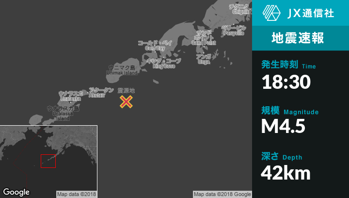 | 震源地 | アラスカのFalse Passから南南西106kmの地点 |