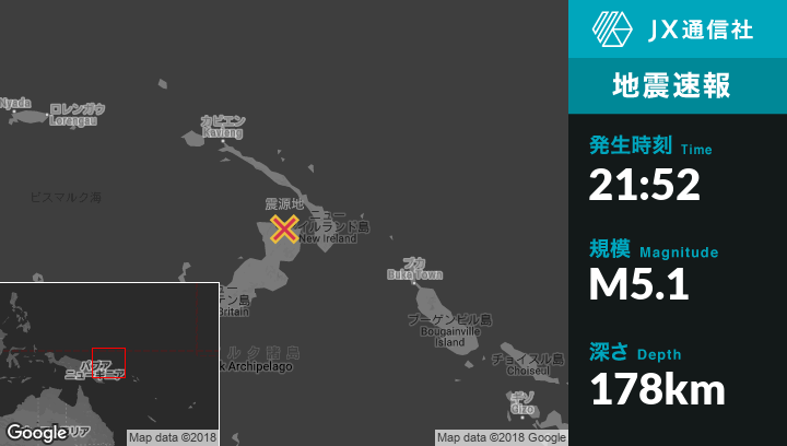 | 震源地 | パプアニューギニアのRabaulから西14kmの地点 |