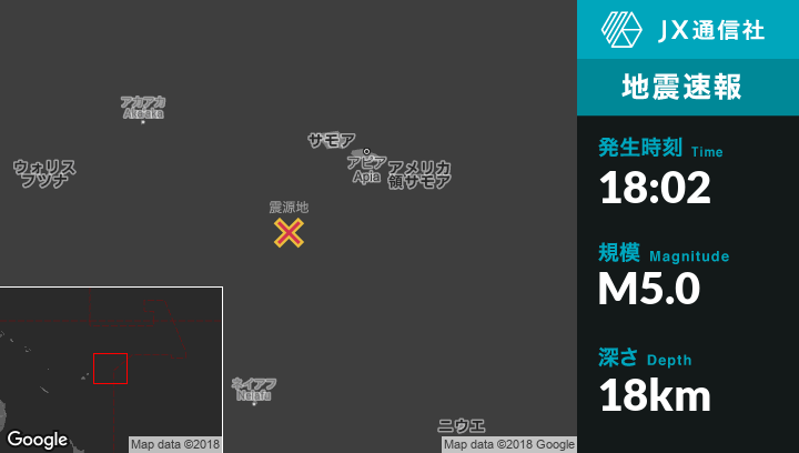 11月08日 18:02頃、トンガのHihifoから北北東88kmの地点でM5.0の地震がありました。