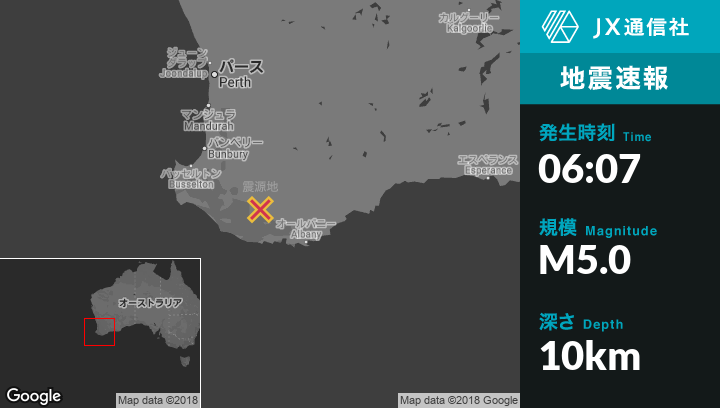 | 震源地 | オーストラリアのKojonupから南南西63kmの地点 |
