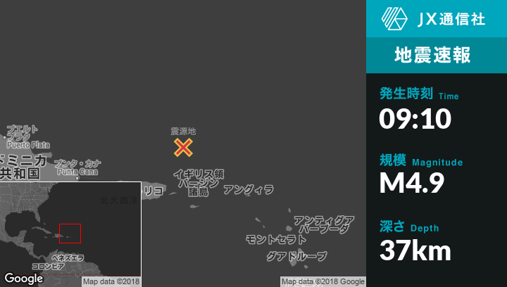 | 震源地 | 米領バージン諸島のCharlotte Amalieから北140kmの地点 |