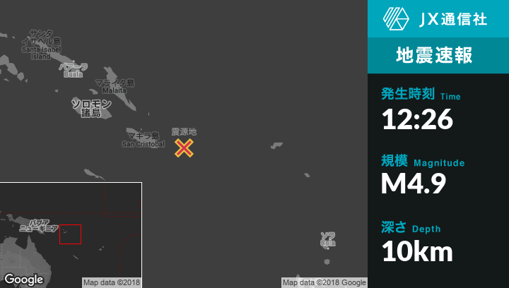 | 震源地 | ソロモン諸島のKirakiraから東南東127kmの地点 |