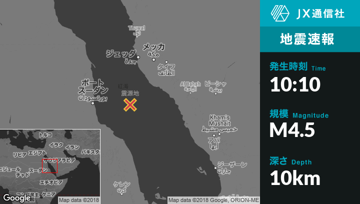| 震源地 | スーダンのSawakinから東北東167kmの地点 |