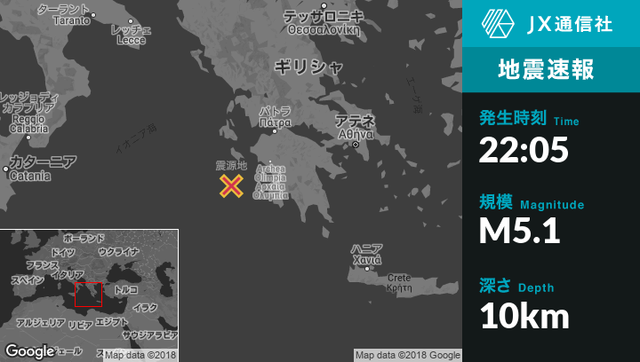 | 震源地 | ギリシャのLithakiaから南南西52kmの地点 |