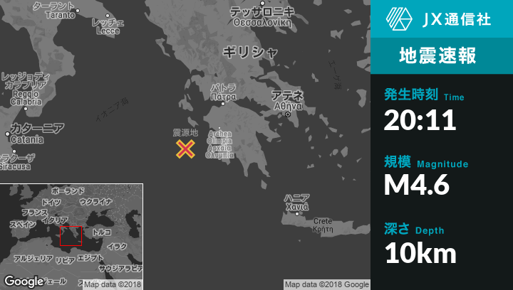 | 震源地 | ギリシャのLithakiaから南南西59kmの地点 |