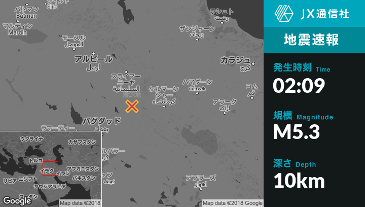 | 震源地 | イランのSarpol-e Zahabから西16kmの地点 |