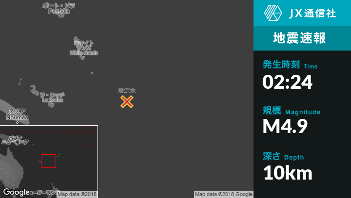| 震源地 | ニューカレドニアのIle Hunterから北北西141kmの地点 |